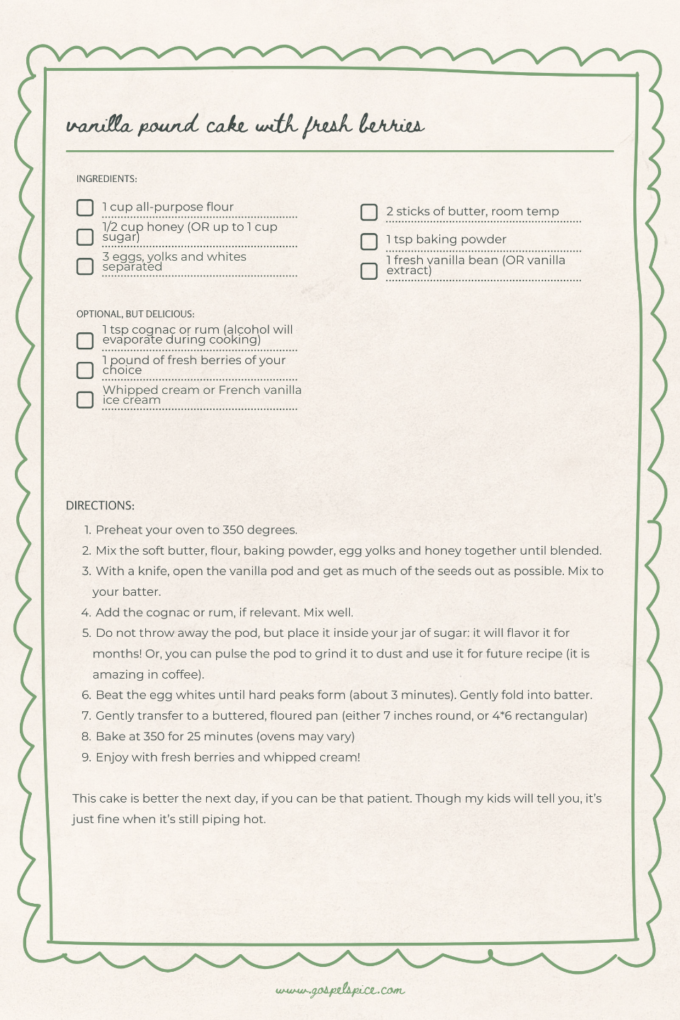 You'll immediately receive access to your full-length Gospel Spice Bible Course, “French Faith”, valued at $19. This course is a wonderful primer for the book!